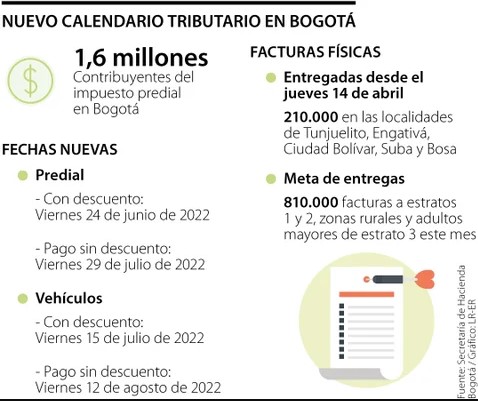 La Secretaría de Hacienda de Bogotá modificó ayer el calendario tributario de la ciudad, luego de haber hecho el anuncio a inicios de semana por las demoras que los contribuyentes presentaron en la recepción y descarga de sus facturas.