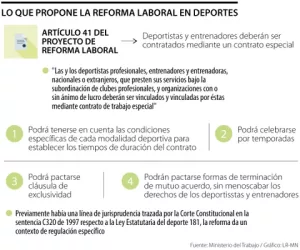 La reforma laboral fue radicada nuevamente en la Cámara de Representantes el pasado 24 de agosto, lo que despertó las reacciones de distintos sectores. En el campo deportivo, la reforma estipuló unos lineamientos que dan cabida a contratos especiales con deportistas y entrenadores, pero no ataca temas relacionados con la seguridad social, algo que no suele ser garantía en este sector.