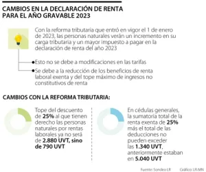 Y es que, con la tributaria, el tope del descuento de 25% al que tienen derecho las personas naturales por rentas laborales ya no será de 2.880 UVT, sino de 790 UVT. Mientras que, en cédulas generales, la sumatoria total de la renta exenta de 25% más el total de las deducciones no puede superar 1.340 UVT, pero ese monto estaba en 5.040 UVT.