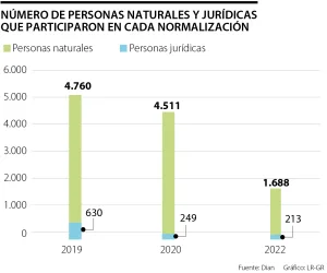 El cuarto motivo es que cada proceso de normalización tributaria recaudó menos que su antecesor. Para el proceso de 2019 participaron 5.390 contribuyentes, de los cuales 88% eran personas naturales. Estas cifras cayeron hasta 1.901 contribuyentes en 2022, de los cuales 1.688 fueron personas naturales.