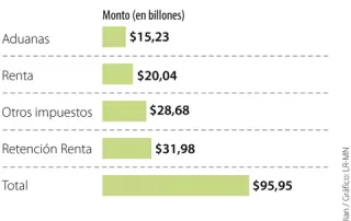 Recaudo bruto de impuestos es de $95,95 billones a abril, con incremento de 28,7%