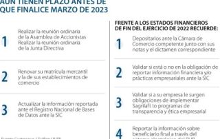Este mes de marzo, las compañías deben realizar varios tramites, entre ellos realizar la asamblea de accionistas o de junta directiva Si usted tiene una empresa, debe saber que hay ciertas obligaciones que debe cumplir antes de que se acabe este mes que recién comienza. Por ejemplo, realizar la reunión ordinaria de la Asamblea de Accionistas y Junta [...]