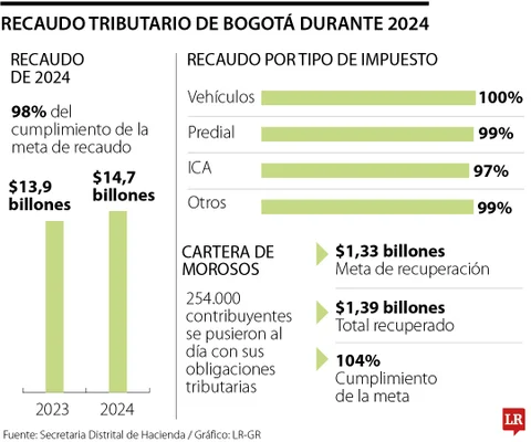 Recaudo tributario distrital alcanzó $14,7 billones en 2024, mayor al registro de 2023