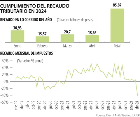 Recaudo tributario de abril quedó $21,5 billones por debajo del cálculo del Gobierno